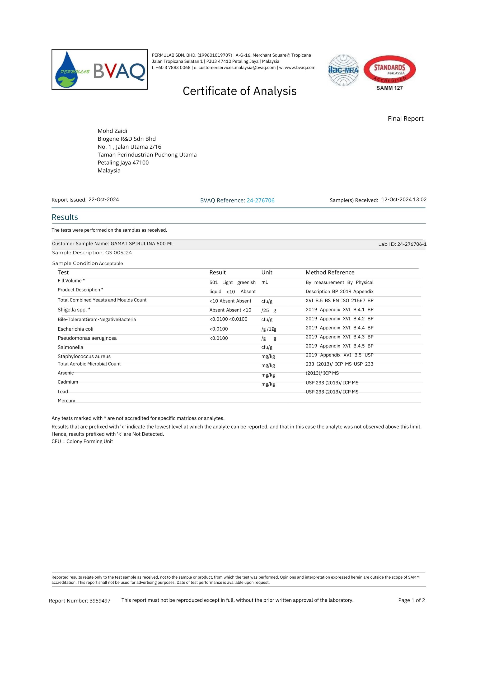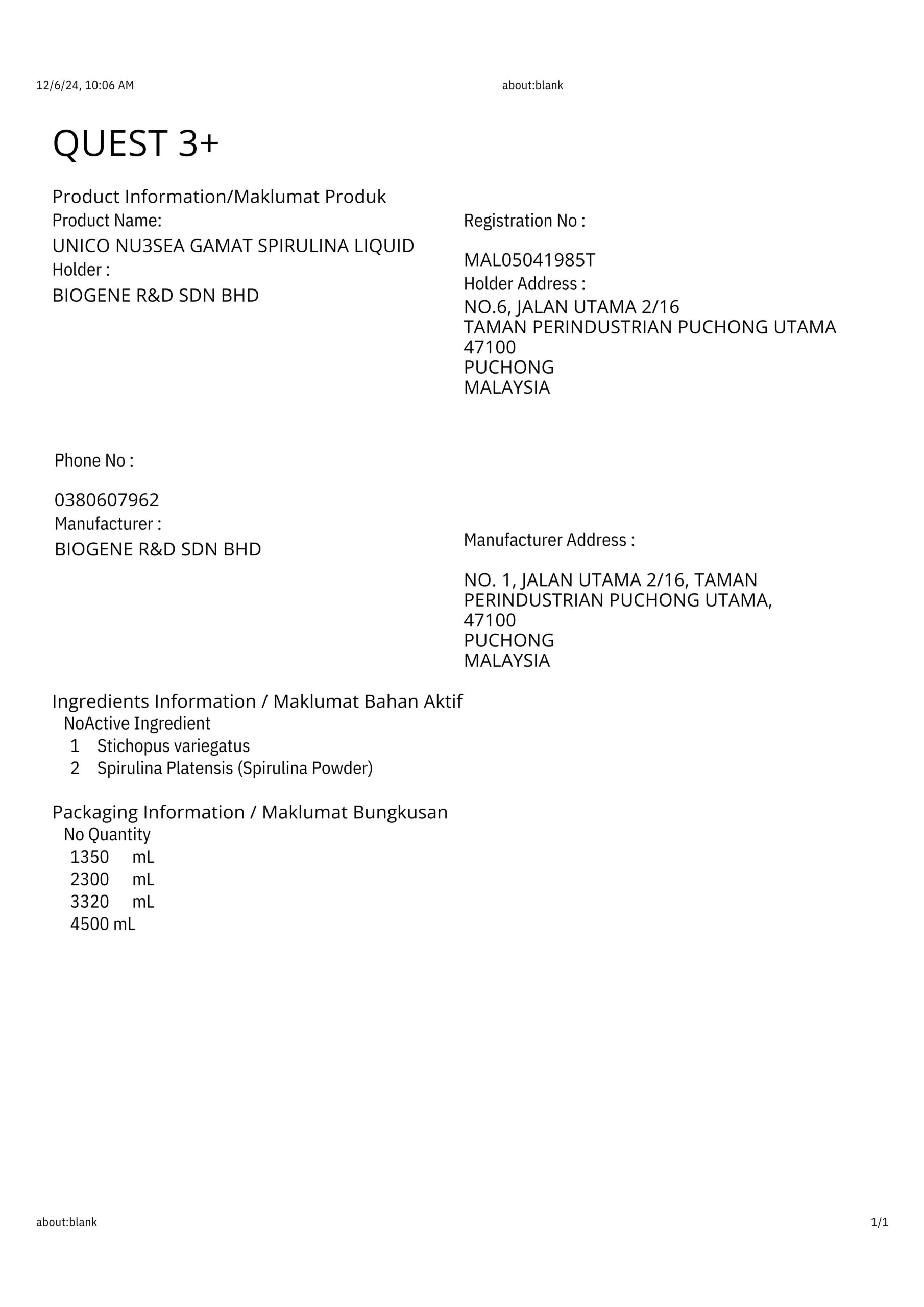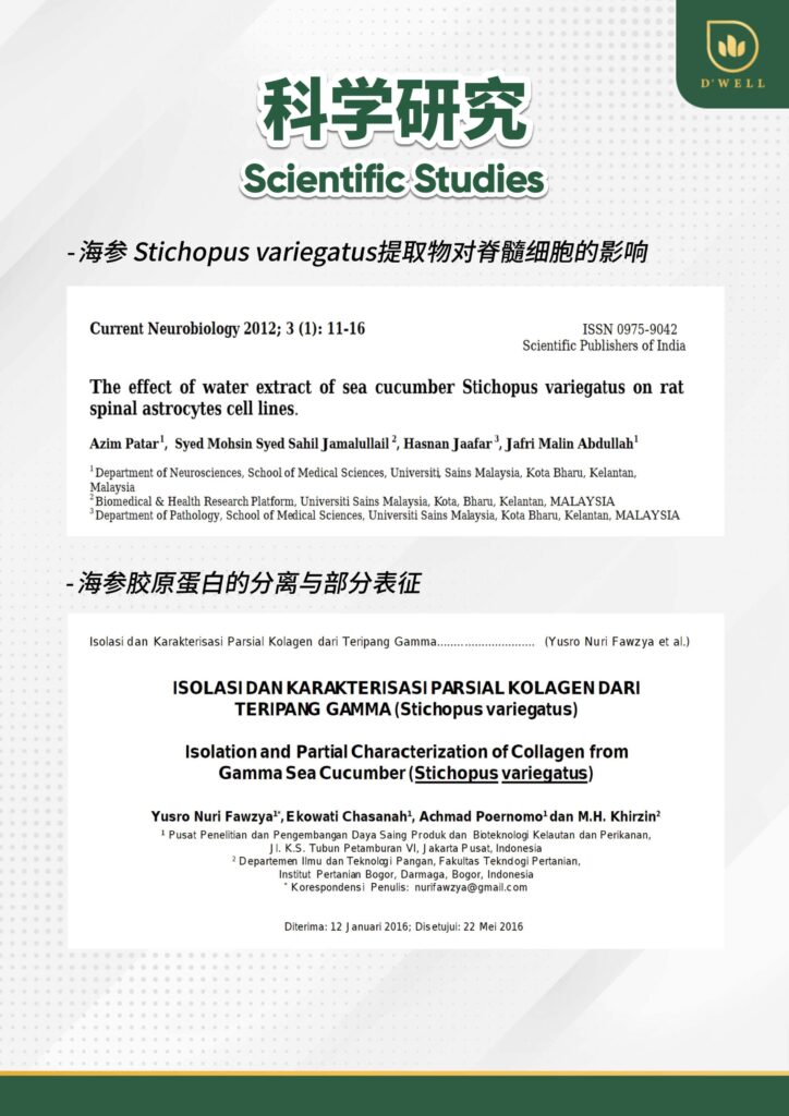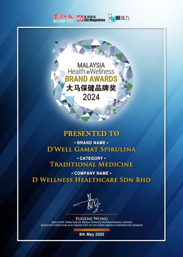 D'WELL 蓝藻海参精(D'WELL Gamat Spirulina)是一款在马来西亚注册的传统健康补充剂(注册号:MAL05041985T)。它采用独特的双效配方,结合了金海参(Stichopus variegatus)提取物与蓝藻(Spirulina)。